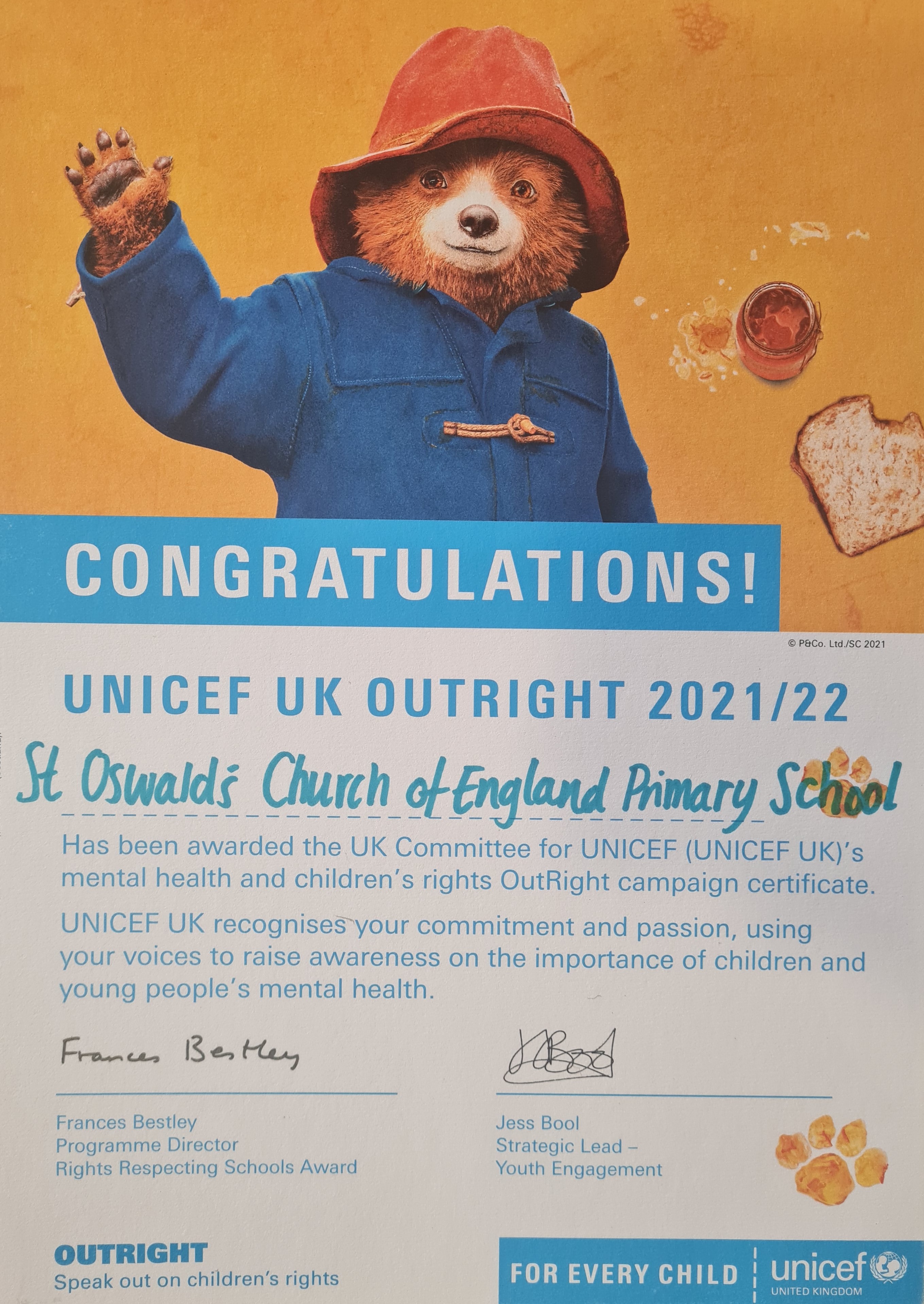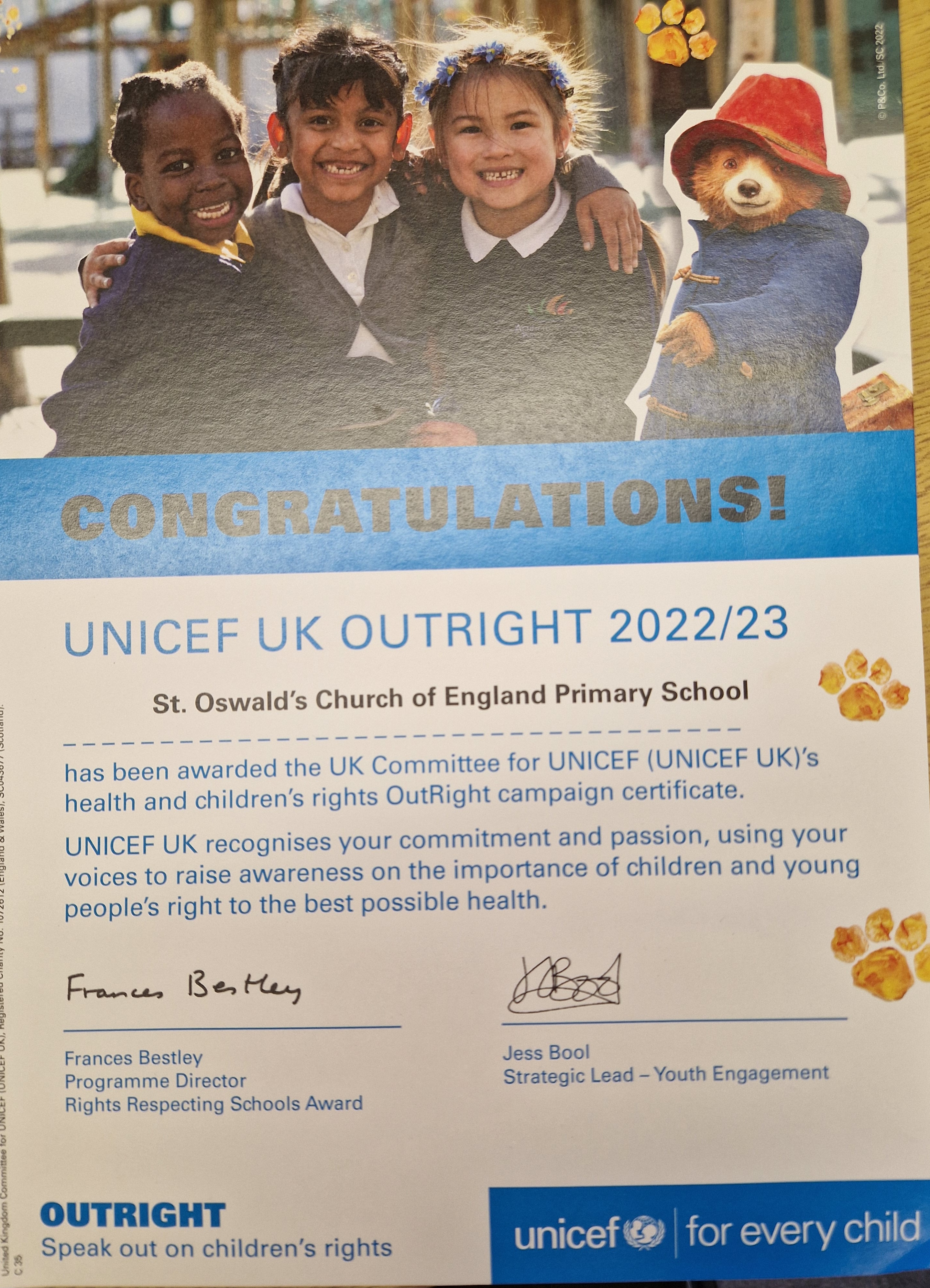 At St. Oswald’s we are extremely proud to be part of the UN Convention of the Rights of the Child, where every child is valued, cared for and developed to their full potential.